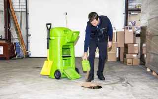 L’operatore deve versare la polvere Fibercan+ sulla sostanza da raccogliere, anche in abbondanza, e rimuoverla immediatamente con scopa e paletta. Prima di essere però di inserire la polvere utilizzata nei bidoni di smaltimento, la passerà attraverso un setaccio che separa i granuli che hanno assorbito il liquido dal resto della polvere, che potrà così essere riutilizzata.